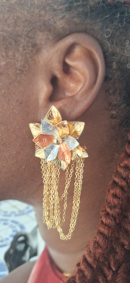 Chaque détail évoque la douceur des pétales, avec des courbes fines et des finitions soigneusement travaillées qui captent la lumière avec délicatesse. La teinte dorée vient rehausser l’ensemble, apportant une touche luxueuse et intemporelle.