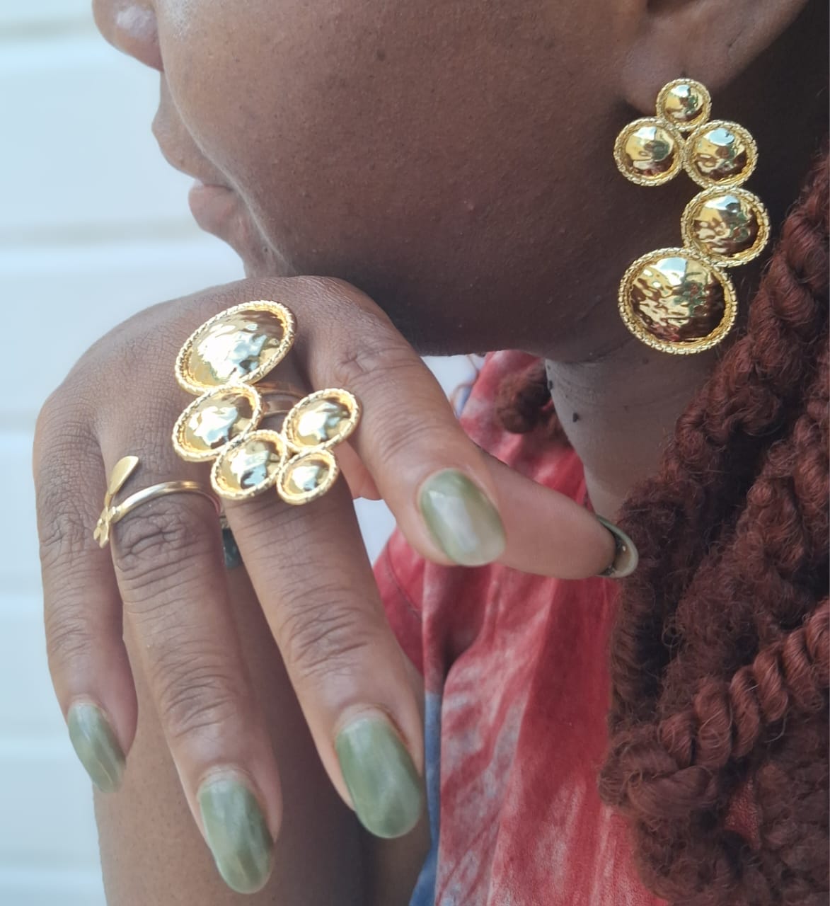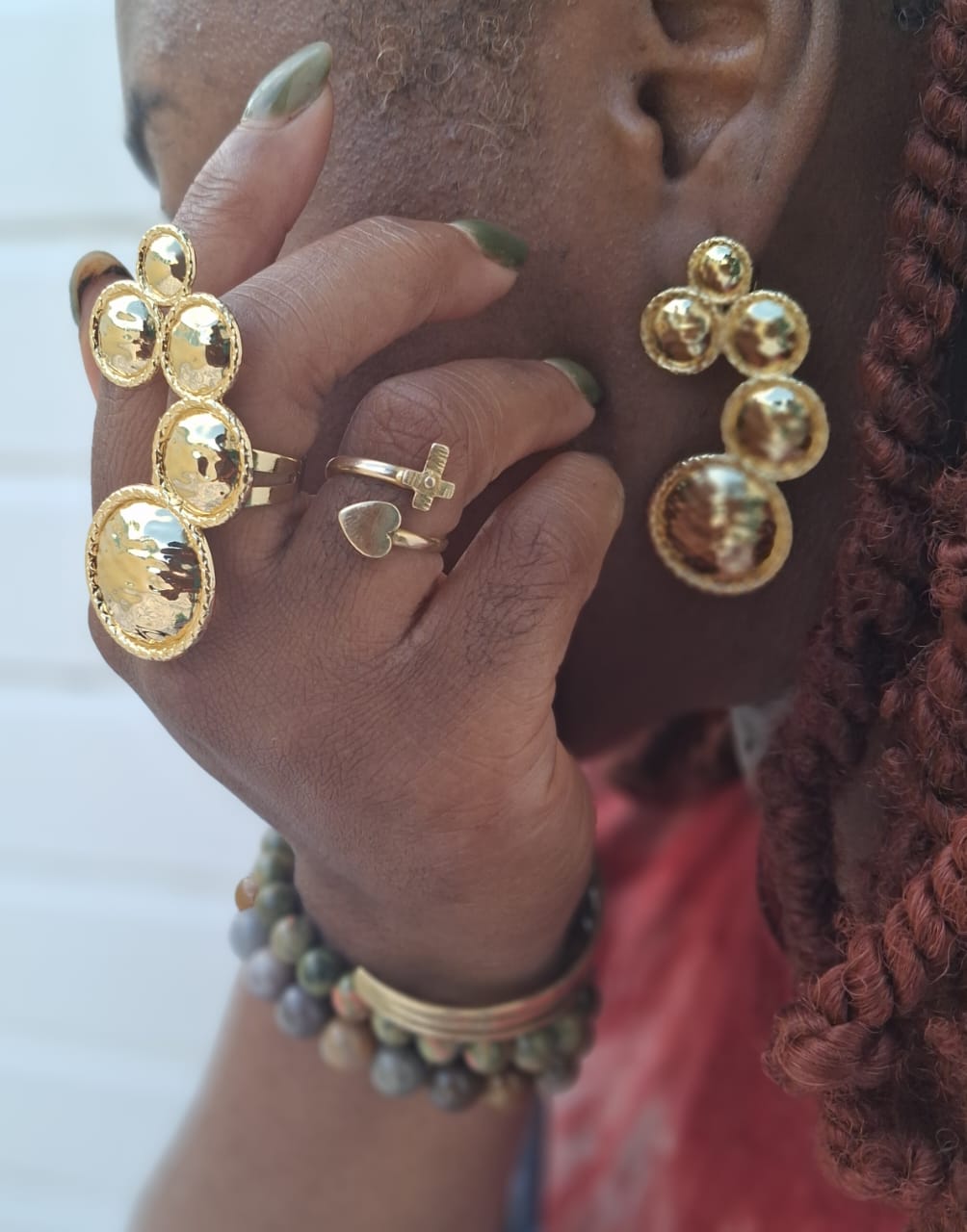 La Parure Galaxie Royale est une véritable ode à la beauté de l’univers et à la puissance féminine. Inspirée des constellations et de l’éclat des astres, cette parure associe une bague et des boucles d’oreilles au design audacieux et harmonieux, évoquant une étoile rayonnante.